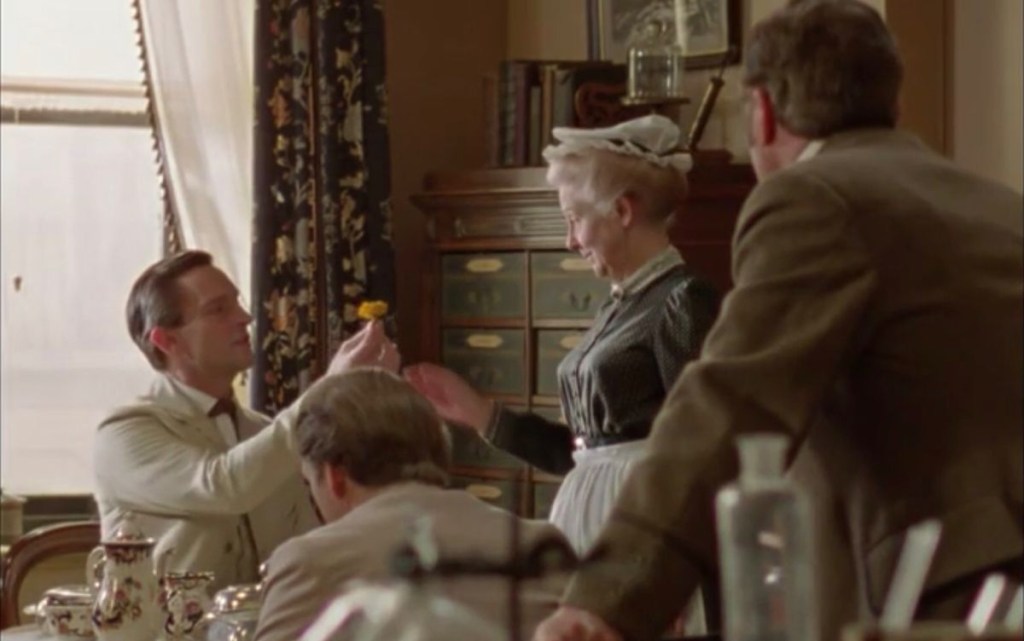 Mrs Hudson and Sherlock Holmes (Sir Arthur Conan Doyle). This is not to exclude Watson, but I do feel like Mrs Hudson is the unsung heroine of the Holmes series. Without her patience and tolerance, there’d be no private consulting detective! I’m especially fond of the dynamic between Jeremy Brett and Rosalie Williams, which fully humanizes this relationship.