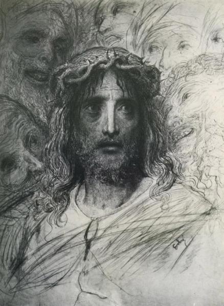 Next is a monochrome portrait of Jesus by Gustave Doré, the famous engraver (his artwork for the Divine Comedy is profound). Jesus looks quite a bit older than 30 here, but I feel this piece really captures the ugliness of the mockers and the cruelty of the crown of thorns.